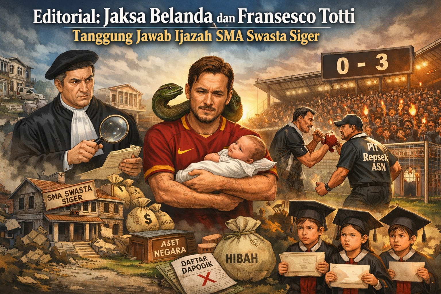 “Barangkali jaksa dari Belanda atau Francesco Totti yang sedang menimang bayi,” sindir seorang pemerhati kebijakan, menggambarkan betapa jauhnya keadilan terasa dari kasus ini.
