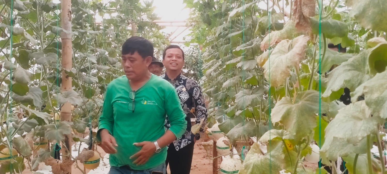 Bupati Riyanto bersama rombongan langsung meninjau sejumlah greenhouse atau rumah tanam tertutup yang menjadi pusat budidaya melon hidroponik. Di dalam greenhouse tersebut, terdapat berbagai jenis melon siap panen seperti intanon, lavender, dan skitro. Bupati terlihat aktif berdialog dengan pemilik kebun, terutama menanyakan proses alih profesi Sagang Nainggolan dari dunia politik ke sektor pertanian, termasuk modal awal serta sumber pembelajaran budidaya melon hidroponik.